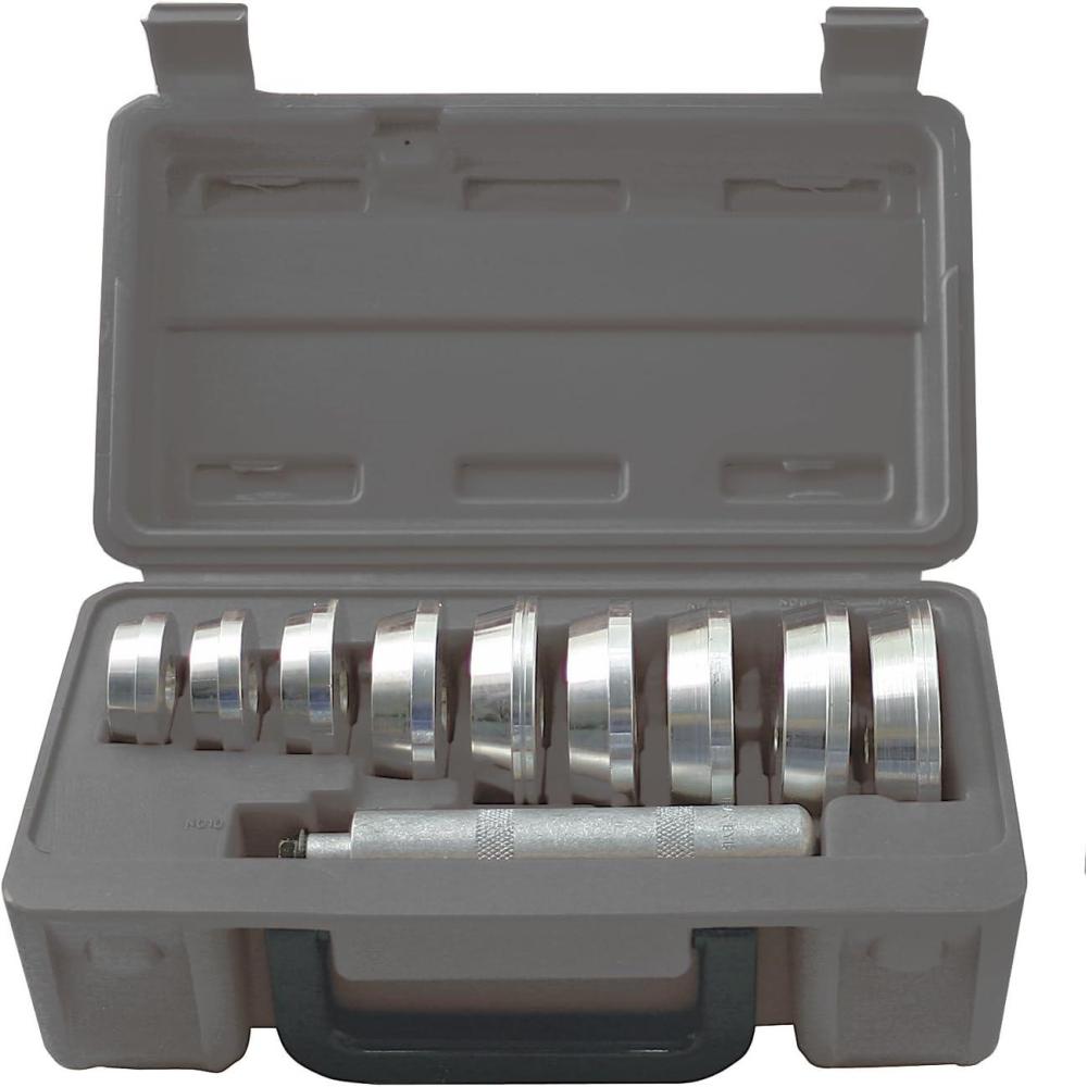Insert bearing race quickly, straight in on first try. Helps reduce damage to both race and axle housing. Six driver sizes fit most bearing race sizes. Turn driver over to drive seals. Three larger drivers available separately. Makes it easier to insert bearing race.