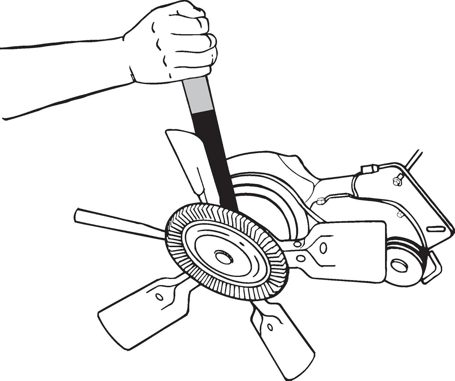 Quickly removes and installs fan clutch when repairing the water pump or fan clutch.