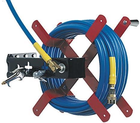 The Side Winder Air Hose Reel provides a large 10″ diameter reel to prevent tight coils in your air hose; two built-in tool hangers keep your air chuck, blow gun or other air tools handy