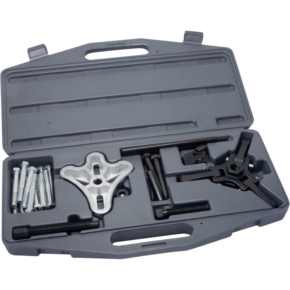 This kit features the puller hardware and special pulling screws to remove most automotive harmonic balancers. The kit includes a standard harmonic balancer puller, pulling screws and adapters for 3300 and 3800 GM V6 engines, and an updated harmonic damper pulley puller for Chrysler, GM, Mitsubishi and Dodge.