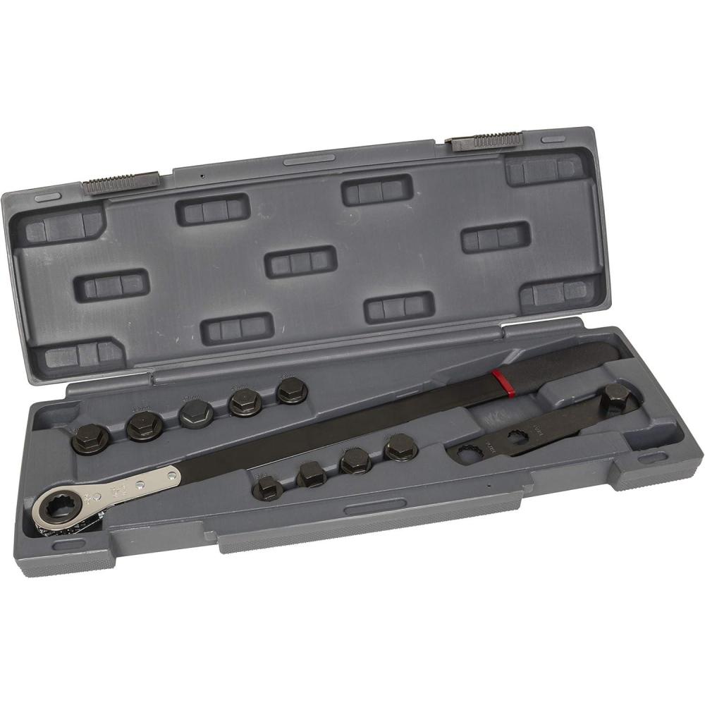 Comes with extension for hard-to-reach idler pulleys. This tool will work where conventional ratchets or breaker bars won’t fit due to limited access.