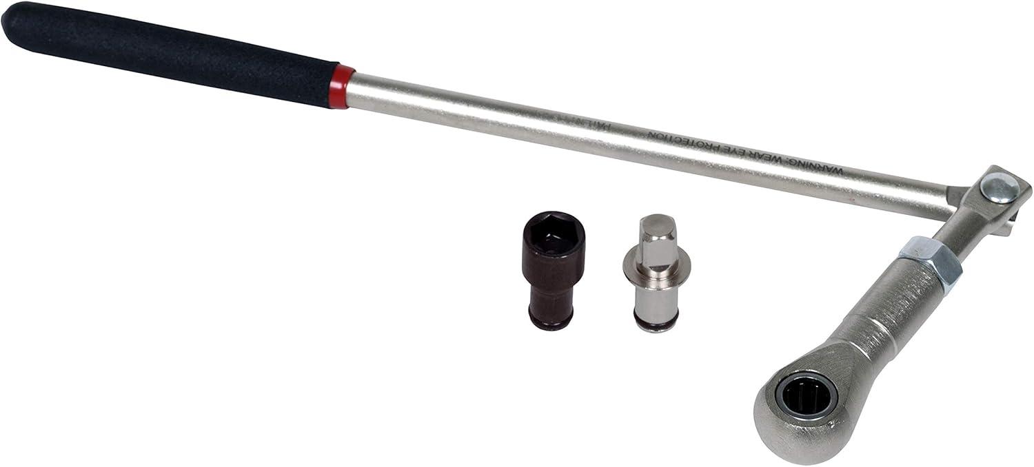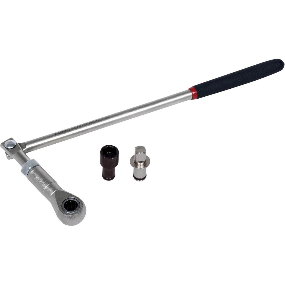 Toothless, infinite ratchet and hinged handle design make it easier to remove and replace fasteners on small, Electric HVAC motors.