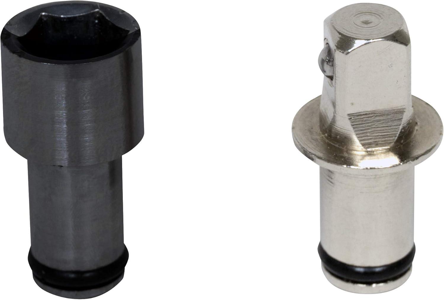Includes 8mm socket and 1/4″ square drive adapter for use with 1/4″ sockets and bit holders