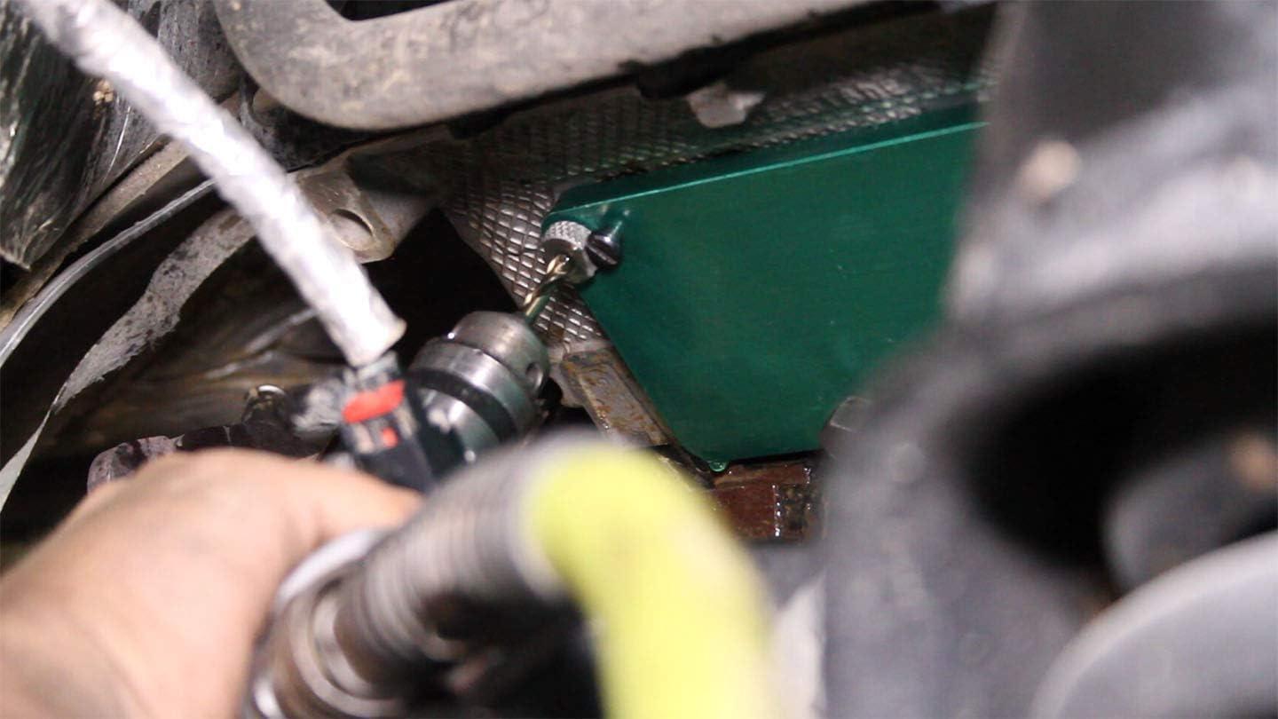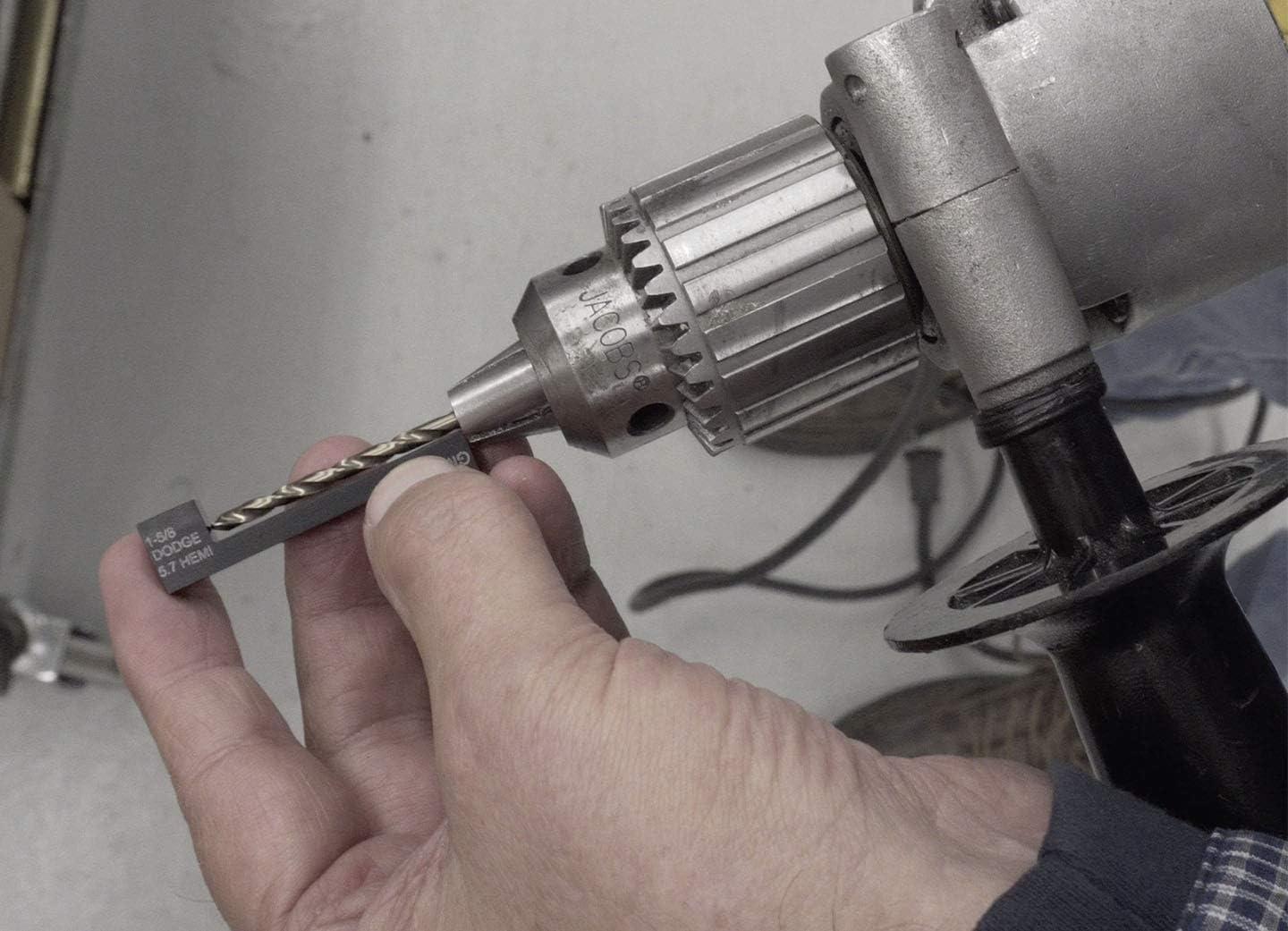 The manifold drill template for Ford removes broken exhaust manifold bolts on Dodge 5.7L Hemi motors without damaging the cylinder head.