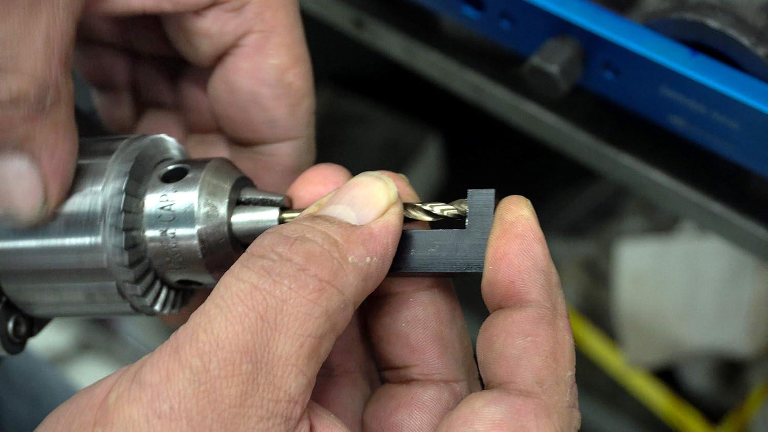 The screw extractor is then used to remove the broken bolt. Includes bushing to drill to tap size when extractor cannot be used.